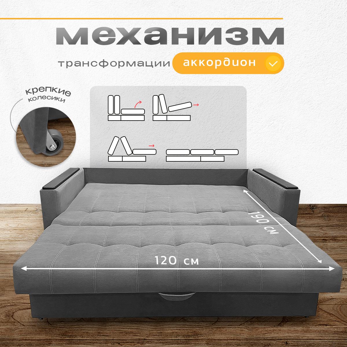 Диван-кровать "Поль", с подлокотниками, механизм Аккордеон, от фабрики NORWOODMSK Диван-кровать "Поль" от фабрики NORWOODMSK - это сочетание комфорта и функциональности. Диван-кровать "Поль" оснащен механизмом трансформации "аккордеон", который обеспечивает быстрое и легкое превращение дивана в кровать. Это позволяет сэкономить пространство в комнате и обеспечивает комфортный сон. Спальное место - 120х190. Обивка дивана выполнена из микровелюра - это мягкий, приятный на ощупь материал, который обладает высокой износостойкостью и долговечностью. Микровелюр легко чистится и сохраняет свой первоначальный вид на протяжении долгого времени. Подлокотники дивана-кровати "Поль" добавляют комфорта и удобства при использовании. Они обеспечивают дополнительную поддержку для рук и плеч, делая отдых еще более приятным. Диван-кровать "Поль" - это не только стильный элемент интерьера, но и практичный выбор для тех, кто ценит комфорт и функциональность.