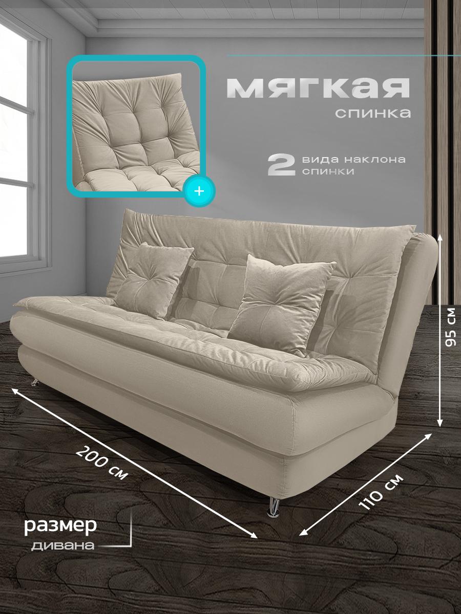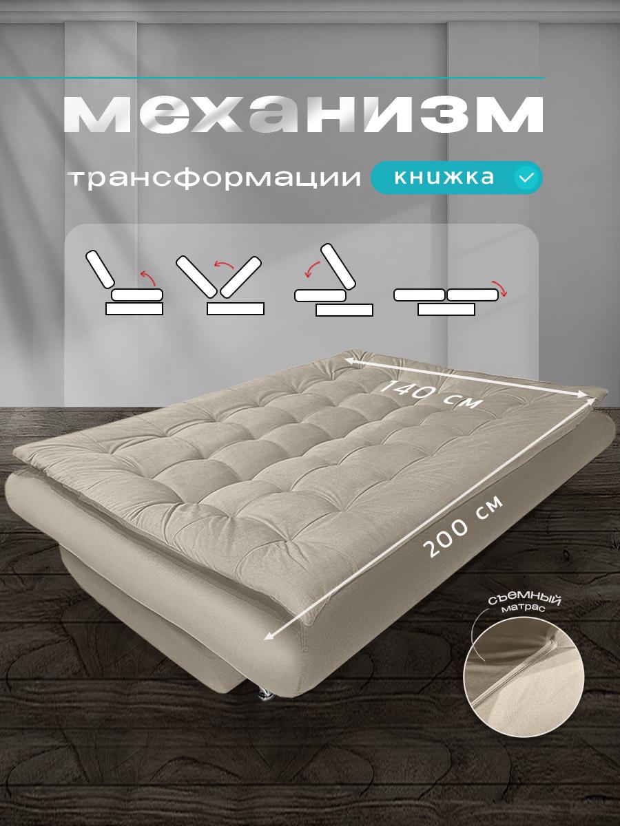 Диван «Ларсен» книжка 200x110 см, спальное место 140x200, с ящиком для белья, без подлокотников, микровелюр Диван «Ларсен» — комфортный диван-книжка с регулировкой спинки и ящиком для белья Удобный диван «Ларсен» станет идеальным решением для ежедневного отдыха и гостей. Механизм трансформации «книжка» обеспечивает простое и надёжное раскладывание — спальное место размером 140×200 см легко превращается в полноценную кровать. Особенности: Два положения спинки — выбирайте удобный угол наклона для отдыха или сна Вместительный ящик для хранения постельного белья Мягкая накладка на молнии — безопасно для детей и домашних Отсутствие подлокотников — современный дизайн и удобная посадка с любой стороны Качество и надёжность: Наполнение: пенополиуретан — упругий, не проседает Каркас: ДСП и фанера — прочный и долговечный Обивка: микровелюр — приятный на ощупь, износостойкий, легко чистится Габариты: Длина: 200 см Ширина: 110 см Высота: 95 см Спальное место: 140×200 см Диван «Ларсен» — практичный и стильный выбор для квартиры, гостиной или дачи. Подходит для ежедневного использования и приёмов гостей. ✅ Надёжный механизм «книжка» ✅ Удобная регулировка спинки ✅ Экономия пространства и порядок с ящиком для белья