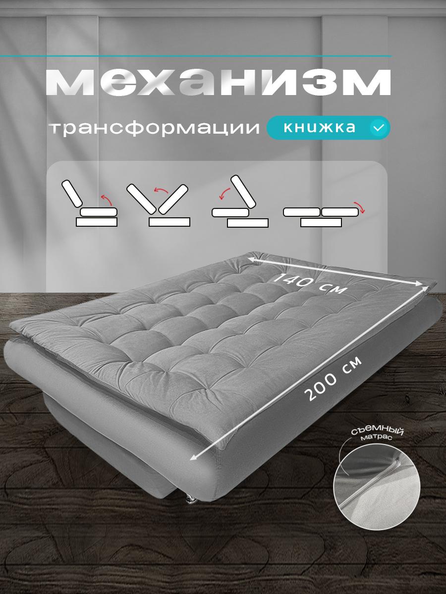 Диван «Ларсен» книжка 200x110 см, спальное место 140x200, с ящиком для белья, без подлокотников, микровелюр Диван «Ларсен» — комфортный диван-книжка с регулировкой спинки и ящиком для белья Удобный диван «Ларсен» станет идеальным решением для ежедневного отдыха и гостей. Механизм трансформации «книжка» обеспечивает простое и надёжное раскладывание — спальное место размером 140×200 см легко превращается в полноценную кровать. Особенности: Два положения спинки — выбирайте удобный угол наклона для отдыха или сна Вместительный ящик для хранения постельного белья Мягкая накладка на молнии — безопасно для детей и домашних Отсутствие подлокотников — современный дизайн и удобная посадка с любой стороны Качество и надёжность: Наполнение: пенополиуретан — упругий, не проседает Каркас: ДСП и фанера — прочный и долговечный Обивка: микровелюр — приятный на ощупь, износостойкий, легко чистится Габариты: Длина: 200 см Ширина: 110 см Высота: 95 см Спальное место: 140×200 см Диван «Ларсен» — практичный и стильный выбор для квартиры, гостиной или дачи. Подходит для ежедневного использования и приёмов гостей. ✅ Надёжный механизм «книжка» ✅ Удобная регулировка спинки ✅ Экономия пространства и порядок с ящиком для белья