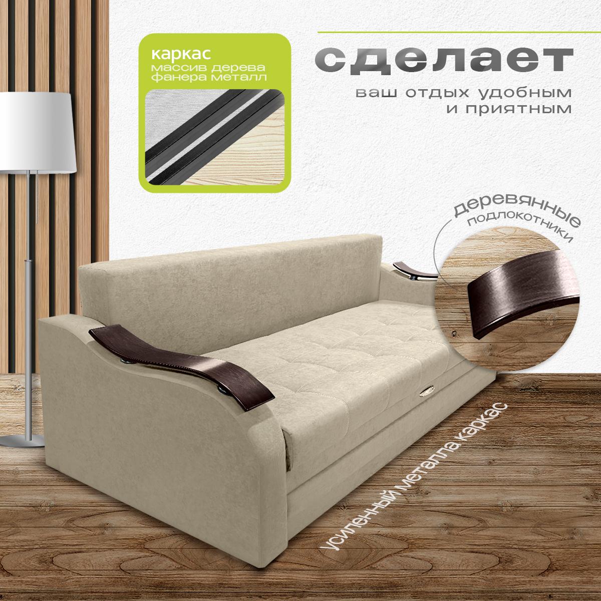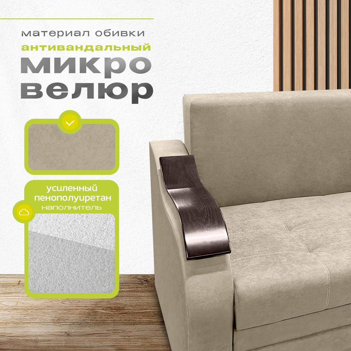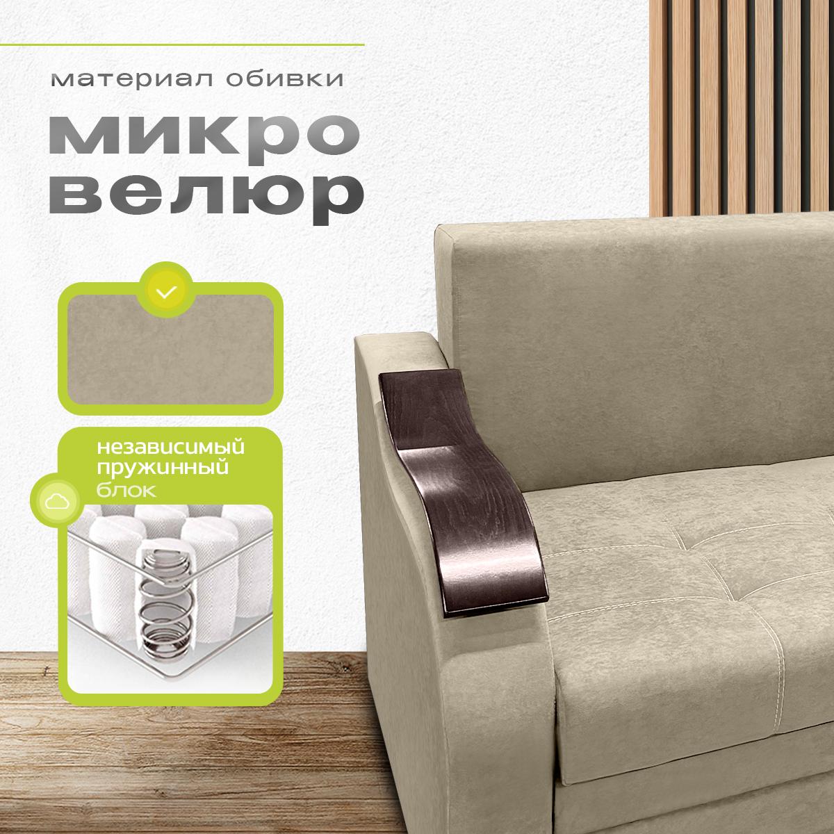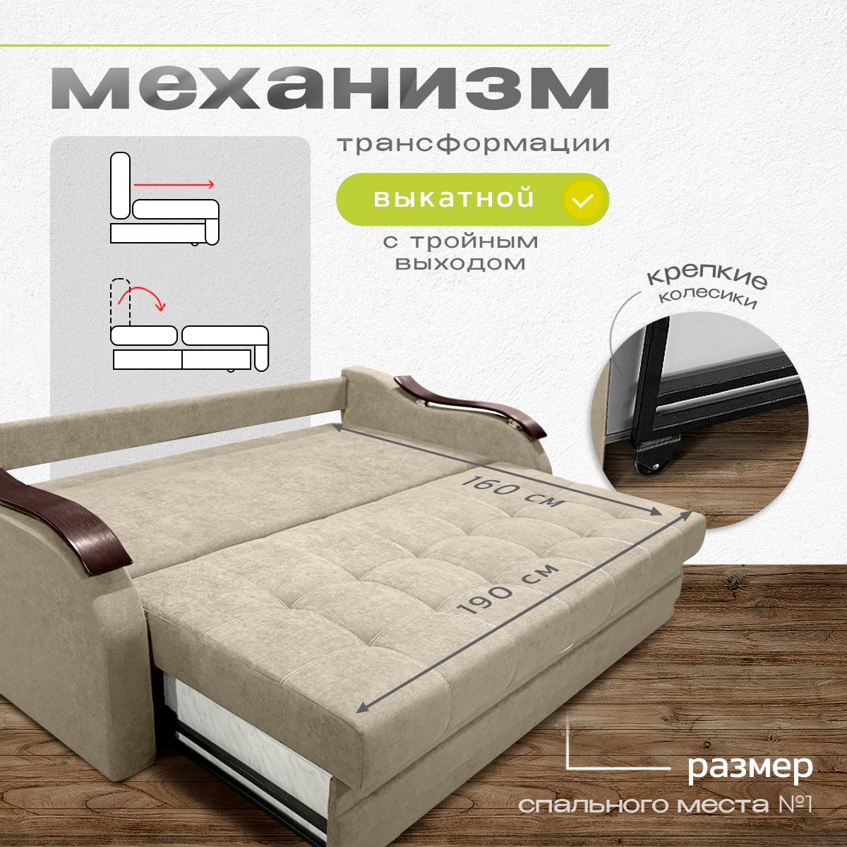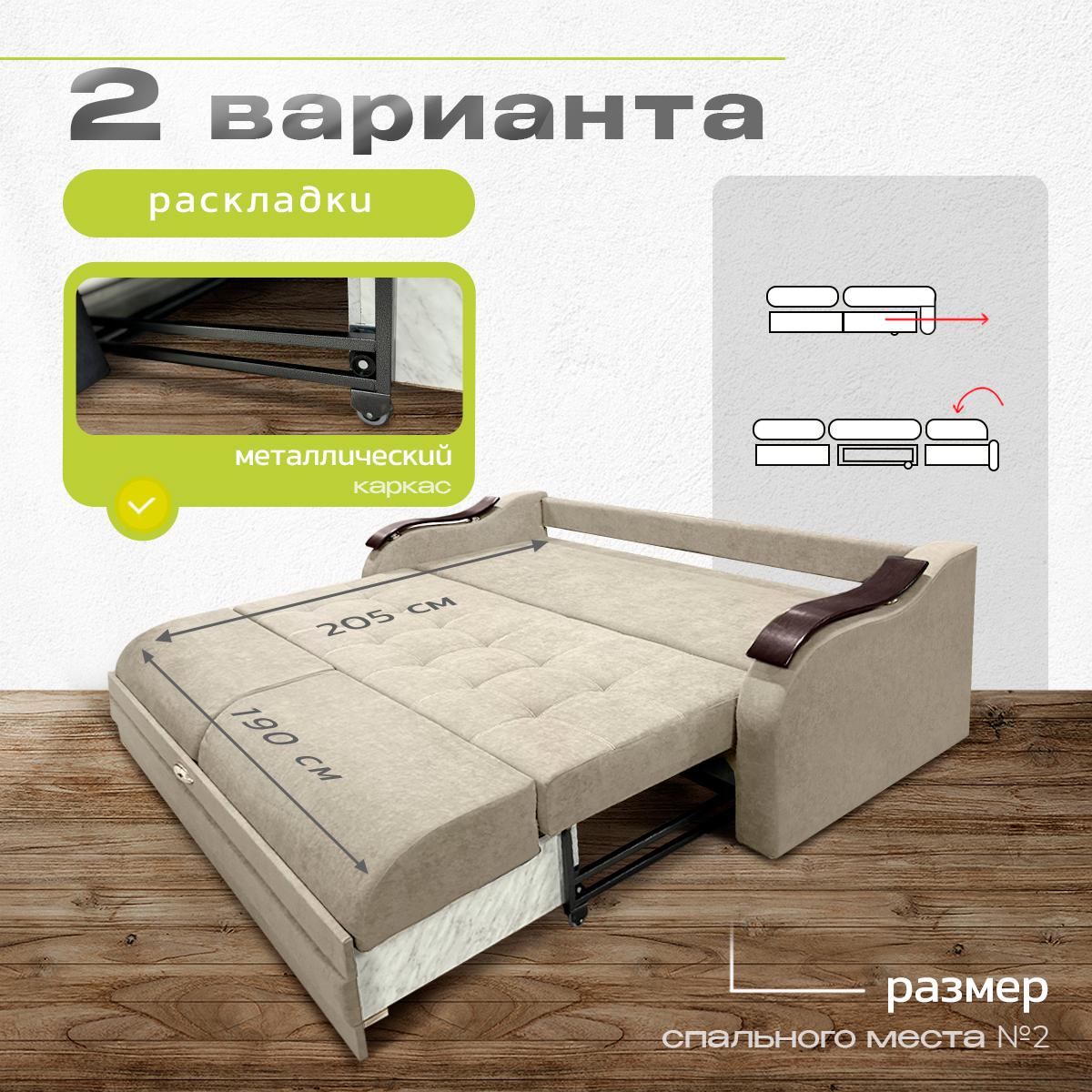 Диван раскладной Спенсер на металлокаркасе Функциональный и надёжный диван с продуманной конструкцией — идеальное решение для гостиной или спальни. Сочетает современный дизайн, комфорт для ежедневного сна и вместительное хранение. Основные характеристики: Габариты дивана (Д × Ш × В): 215 × 105 × 95 см Размеры спального места: вариант 1: 160 × 190 см вариант 2: 205 × 190 см (в зависимости от способа раскладывания) Механизм трансформации: тройной раскладной (два варианта раскладывания для разной конфигурации спального места) Материал каркаса: металл (основа) + ДСП и фанера (дополнительные элементы) Обивка: микровелюр (износостойкий, мягкий, устойчив к истиранию) Наполнение: независимый пружинный блок (анатомическая поддержка, равномерное распределение нагрузки) Дополнительные элементы: деревянные декоративные вставки на подлокотниках Вместительные ящики для белья: есть (под сиденьем) Максимальная нагрузка: 240 кг Ключевые преимущества: Два варианта спального места — гибкость в использовании под разные потребности. Тройной раскладной механизм — плавное и надёжное раскладывание, долговечность конструкции. Прочный металлокаркас — высокая устойчивость и длительный срок службы. Анатомический комфорт — независимый пружинный блок обеспечивает здоровый сон. Практичность — вместительные ящики для хранения белья и постельных принадлежностей. Стильный дизайн — сочетание микровелюра и деревянных декоративных элементов придаёт изысканность. Компактность в сложенном виде — экономия пространства в небольших помещениях. Уход за изделием: регулярная чистка пылесосом с мягкой насадкой; удаление пятен — мягкая влажная ткань с нейтральным моющим средством; избегайте агрессивных чистящих средств и абразивных материалов. Гарантия: 18 месяцев. Почему стоит выбрать диван «Спенсер»? два варианта спального места для разных сценариев использования; надёжный тройной раскладной механизм; прочный металлокаркас с элементами из ДСП и фанеры.