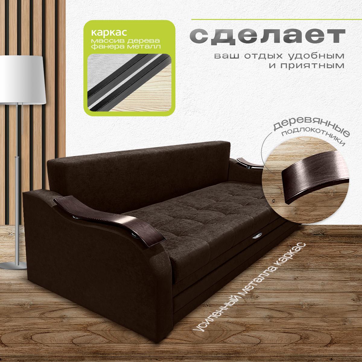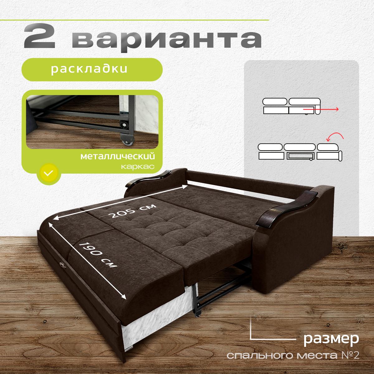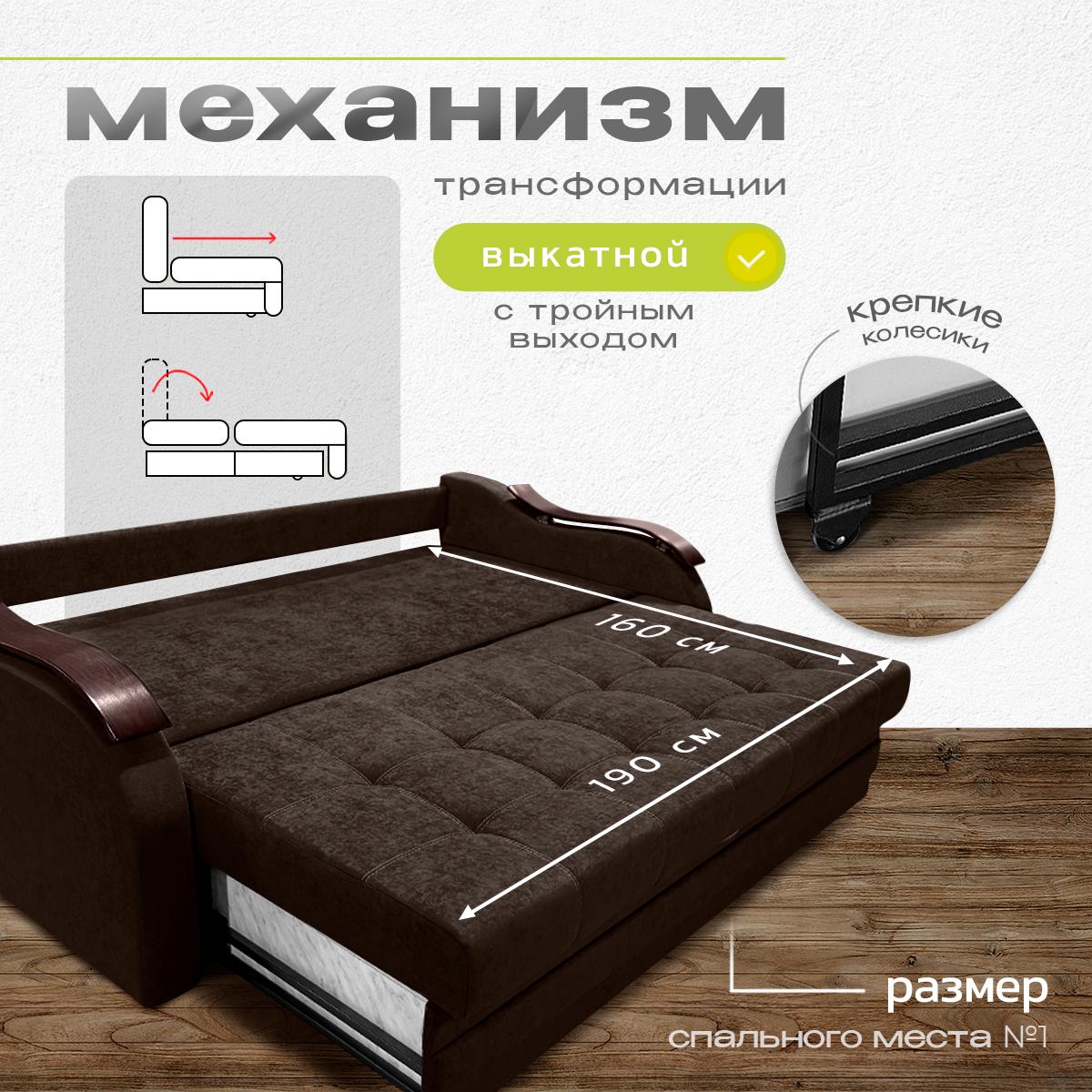 Диван раскладной Спенсер на металлокаркасе Функциональный и надёжный диван с продуманной конструкцией — идеальное решение для гостиной или спальни. Сочетает современный дизайн, комфорт для ежедневного сна и вместительное хранение. Основные характеристики: Габариты дивана (Д × Ш × В): 215 × 105 × 95 см Размеры спального места: вариант 1: 160 × 190 см вариант 2: 205 × 190 см (в зависимости от способа раскладывания) Механизм трансформации: тройной раскладной (два варианта раскладывания для разной конфигурации спального места) Материал каркаса: металл (основа) + ДСП и фанера (дополнительные элементы) Обивка: микровелюр (износостойкий, мягкий, устойчив к истиранию) Наполнение: независимый пружинный блок (анатомическая поддержка, равномерное распределение нагрузки) Дополнительные элементы: деревянные декоративные вставки на подлокотниках Вместительные ящики для белья: есть (под сиденьем) Максимальная нагрузка: 240 кг Ключевые преимущества: Два варианта спального места — гибкость в использовании под разные потребности. Тройной раскладной механизм — плавное и надёжное раскладывание, долговечность конструкции. Прочный металлокаркас — высокая устойчивость и длительный срок службы. Анатомический комфорт — независимый пружинный блок обеспечивает здоровый сон. Практичность — вместительные ящики для хранения белья и постельных принадлежностей. Стильный дизайн — сочетание микровелюра и деревянных декоративных элементов придаёт изысканность. Компактность в сложенном виде — экономия пространства в небольших помещениях. Уход за изделием: регулярная чистка пылесосом с мягкой насадкой; удаление пятен — мягкая влажная ткань с нейтральным моющим средством; избегайте агрессивных чистящих средств и абразивных материалов. Гарантия: 18 месяцев. Почему стоит выбрать диван «Спенсер»? два варианта спального места для разных сценариев использования; надёжный тройной раскладной механизм; прочный металлокаркас с элементами из ДСП и фанеры.