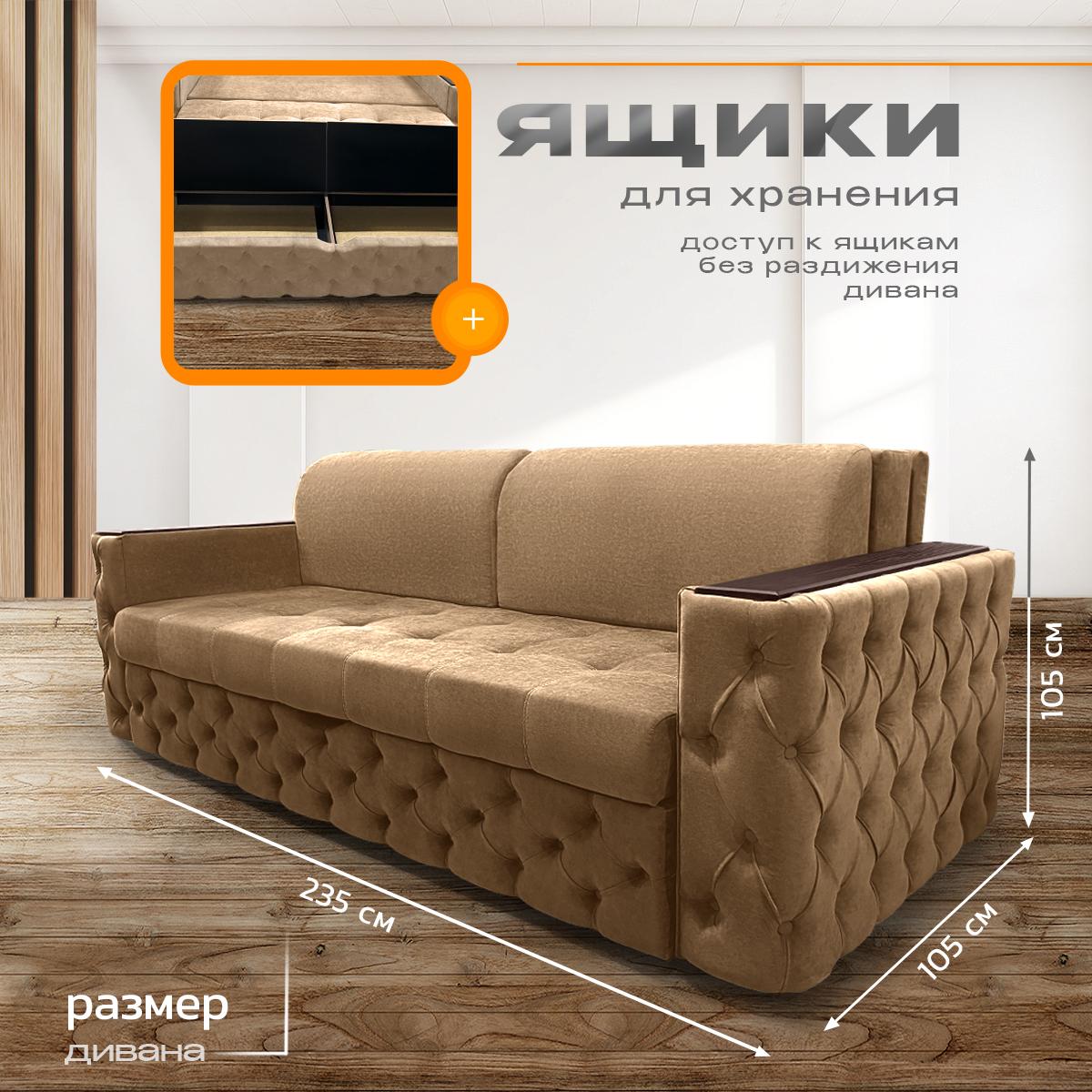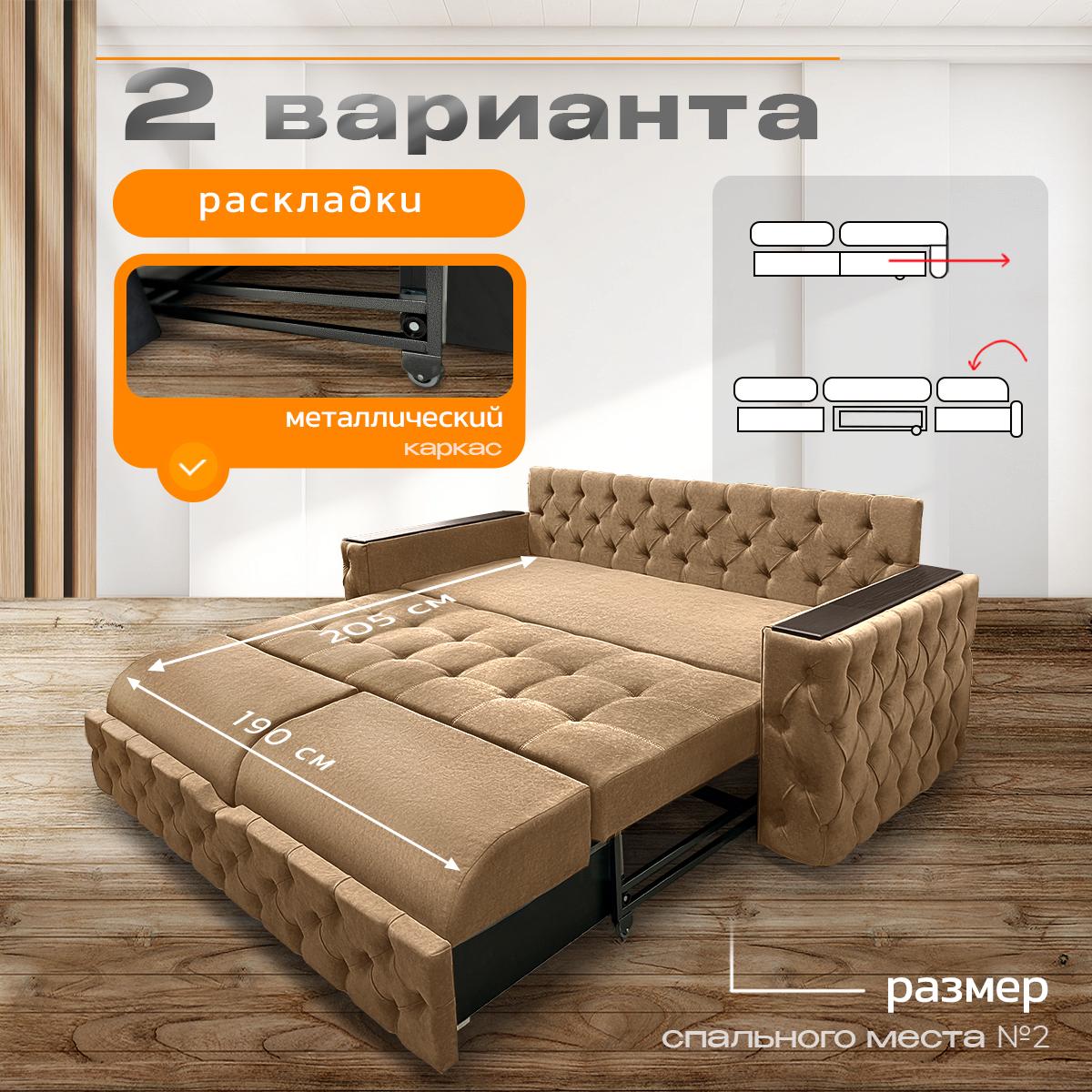 Диван Стронг Два варианта спального места — адаптируйтесь под свои потребности: вариант 1: 160 × 190 см; вариант 2: 190 × 205 см (в зависимости от способа раскладывания). Вместительная система хранения: большой ящик для белья под сиденьем — храните постельные принадлежности и сезонные вещи. Лёгкое раскладывание. Выкатной механизм трансформации позволяет быстро превратить диван в полноценное спальное место — и всё это без необходимости отодвигания от стены. Надёжная конструкция. Металлический каркас гарантирует устойчивость и долгий срок службы даже при ежедневной эксплуатации. Максимальная нагрузка — 240 кг. Комфортный сон. Наполнение из пенополиуретана плюс независимый пружинный блок средней жёсткости обеспечивает анатомическую поддержку позвоночника и полноценный отдых. Стильный и практичный дизайн. Обивка из микровелюра выглядит дорого и элегантно, приятна на ощупь, устойчива к истиранию и проста в уходе. Ключевые характеристики: Габариты дивана (Д × Ш × В): 240 × 105 × 95 см. Спальное место: два варианта (160 × 190 см или 190 × 205 см). Механизм трансформации: выкатной — простой и надёжный. Материал каркаса: металл — высокая прочность и долговечность. Обивка: микровелюр — износостойкий, тактильно приятный материал. Наполнение: пенополиуретан + независимый пружинный блок, средняя жёсткость. Дополнительные элементы: вместительный ящик для белья под сиденьем. Максимальная нагрузка: 240 кг. Гарантия: 18 месяцев. Уход за изделием: Чтобы диван служил долго и сохранял привлекательный вид, следуйте простым правилам: регулярно очищайте поверхность пылесосом с мягкой насадкой; для удаления пятен используйте мягкую влажную ткань с нейтральным моющим средством; избегайте агрессивных чистящих средств и абразивных материалов. Создайте многофункциональное пространство с диваном‑кроватью «Стронг+Стол»! Комфорт, практичность и современный дизайн — всё в одной модели. Закажите сейчас — оптимизируйте своё пространство с умной мебелью от NORWOODMSK!