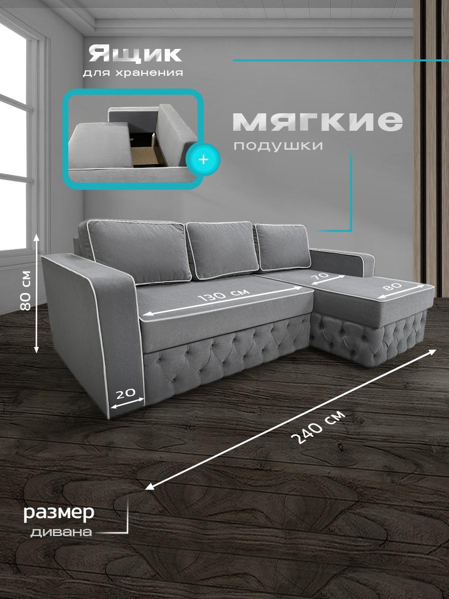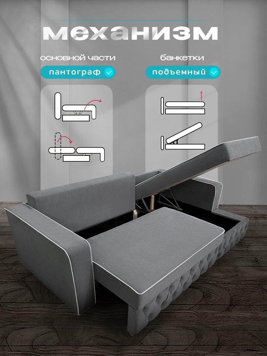 Угловой диван «Сканди» — стиль и комфорт на каждый день. Почему стоит выбрать диван «Сканди»: Лаконичный дизайн. Чёткие линии и продуманные пропорции гармонично впишутся в любой современный интерьер — от минимализма до лофта. Удобный механизм «пантограф». Трансформация в спальное место не требует усилий: просто потяните сиденье вверх и на себя — диван плавно выдвинется вперёд, не повреждая напольное покрытие. Просторное спальное место. Размеры спального места 150×200 см обеспечивают комфортный сон для одного взрослого или двоих детей. Независимый пружинный блок. Обеспечивает анатомическую поддержку тела, равномерно распределяет нагрузку и сохраняет форму дивана на долгие годы. Вместительные ящики для белья. Практичное решение для хранения постельных принадлежностей — больше не нужно искать место для сезонных вещей. Комфортная высота посадки 48 см. Оптимальная высота позволяет удобно садиться и вставать, подходит для людей разного роста и возраста. Приятная обивка из микровелюра. Материал устойчив к истиранию, не теряет цвет со временем и приятен на ощупь. Легко чистится, что особенно важно в семьях с детьми и домашними животными. Прочная конструкция. аркас из ДСП и фанеры гарантирует надёжность и долговечность дивана даже при ежедневном использовании. Основные характеристики: Размеры дивана: 240×105×80 см (Ш × Г × В). Спальное место: 150×200 см. Механизм трансформации: пантограф. Материал каркаса: ДСП, фанера. Наполнение: независимый пружинный блок. Обивка: микровелюр. Высота посадки: 48 см. Дополнительные элементы: ящики для белья.