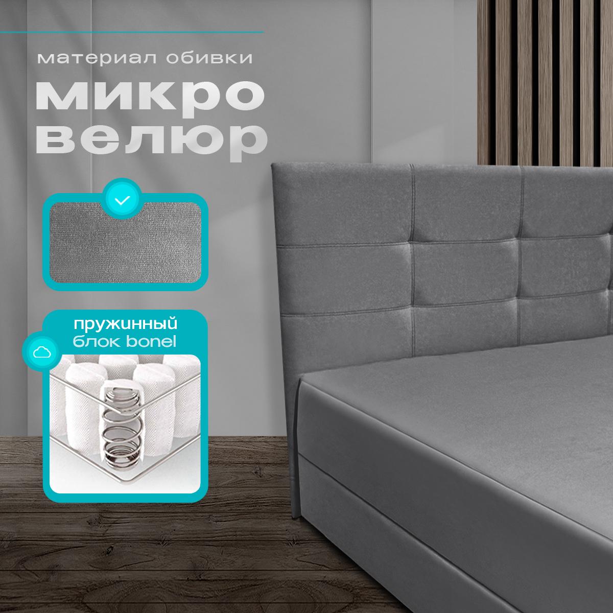 Кровать-тахта Олсен (160х190) с мягким изголовьем и подъемным механизмом Кровать‑тахта «Олсен» с матрасом — комфорт и функциональность в каждой детали Создайте уютное спальное место с кроватью‑тахтой «Олсен». Модель сочетает стильный дизайн, надёжность и практичные функции для повседневного использования. Ключевые преимущества: мягкое изголовье — комфортный отдых и приятный визуальный акцент; подъёмный механизм — лёгкий доступ к ящику для белья; вместительный ящик для хранения (максимальная нагрузка — 10 кг) — порядок в спальне без лишних шкафов; матрас со независимым пружинным блоком — анатомическая поддержка и здоровый сон; средняя жёсткость матраса — оптимальный баланс комфорта и поддержки позвоночника. Технические характеристики: спальное место: 160 × 190 см; габариты (Д × В × Г): 160 × 110 × 195 см; высота ножек: 7–10 см (зависит от партии); высота посадки: 43–44 см; высота матраса: 22–23 см. Материалы: каркас: ДСП и фанера (прочность и долговечность); обивка: микровелюр (приятный на ощупь, устойчив к износу); наполнитель матраса: независимый пружинный блок. Важно: цвет изделия на экране может отличаться от реального из‑за особенностей цветопередачи устройств; кровать поставляется в комплекте с матрасом. Почему выбирают «Олсен»: эргономичный дизайн — впишется в современный интерьер; экономия пространства — ящик для белья заменяет дополнительную мебель; надёжная конструкция — выдерживает повседневную эксплуатацию; комфорт — мягкое изголовье и анатомический матрас для качественного отдыха.