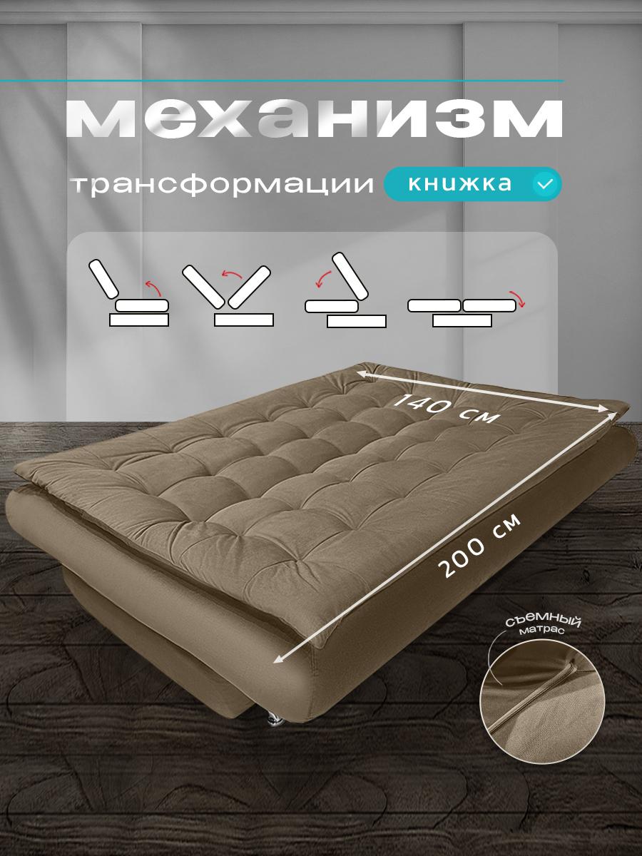 Диван «Ларсен» книжка 200x110 см, спальное место 140x200, с ящиком для белья, без подлокотников, микровелюр Диван «Ларсен» — комфортный диван-книжка с регулировкой спинки и ящиком для белья Удобный диван «Ларсен» станет идеальным решением для ежедневного отдыха и гостей. Механизм трансформации «книжка» обеспечивает простое и надёжное раскладывание — спальное место размером 140×200 см легко превращается в полноценную кровать. Особенности: Два положения спинки — выбирайте удобный угол наклона для отдыха или сна Вместительный ящик для хранения постельного белья Мягкая накладка на молнии — безопасно для детей и домашних Отсутствие подлокотников — современный дизайн и удобная посадка с любой стороны Качество и надёжность: Наполнение: пенополиуретан — упругий, не проседает Каркас: ДСП и фанера — прочный и долговечный Обивка: микровелюр — приятный на ощупь, износостойкий, легко чистится Габариты: Длина: 200 см Ширина: 110 см Высота: 95 см Спальное место: 140×200 см Диван «Ларсен» — практичный и стильный выбор для квартиры, гостиной или дачи. Подходит для ежедневного использования и приёмов гостей. ✅ Надёжный механизм «книжка» ✅ Удобная регулировка спинки ✅ Экономия пространства и порядок с ящиком для белья